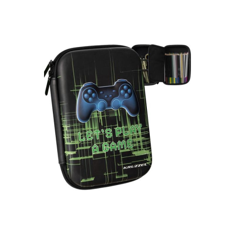 1 kép Kruzzel Egy rekeszes, cipzáras tolltartó belső elválasztóval, hálós zsebekkel, 3D játékkonzol mintával