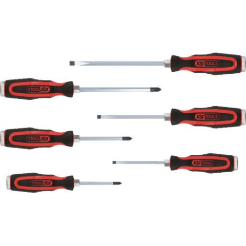 1 kép KS Tools Csavarhúzó készlet, lapos + PH, kétkomponensű nyél 6 részes 3FL+3PH, üthető
