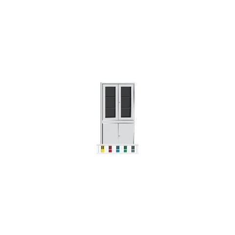 KSPS K1A üvegbetétes ajtós fémszekrény alsó teli ajtós tárolóval zár és alkatrészei 1 kép