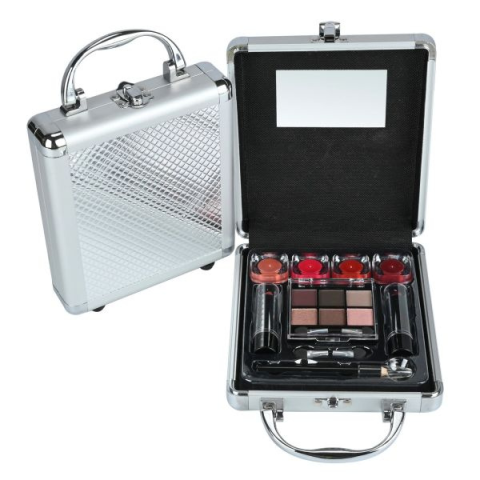 Sminkkészlet stílusos bőröndben! A VIP Journey Ibiza ezüst színű bőröndben érkező sminkkészlete minden kozmetikumot tartalmaz, amire egy lánynak szüksége lehet a tökéletes megjelenéshez.A csomagban található egymáshoz illő szemhéjfestékek, rúzsok és szájfények segítségével stílusos nappali vagy esti sminket készíthetnek a szépségápolási cikkek szerelmesei. A sminktermékek egy praktikus, ezüst színű bőröndben kaptak helyet, így a lányok könnyen maguk