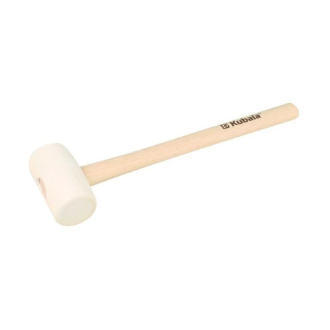 Gumikalapács illesztõ, szintezõ munkákhoz parkettázáshoz, burkoláshoz fehér gumi fejjel. A fából készült fogantyút színtelen lakk védi a kiszáradástól. A fehér gumi nem hagy nyomot a világos anyagokon. fogantyú hossza 280mm fej átmérõje 50mm fej h