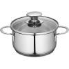 Fazék - rozsdamentes acél belső felület, alkalmas gáz, elektromos, indukciós és üvegkerámia főzőlaphoz, alakja kerek, 1 l-es kiszerelés, rozsdamentes acél fogantyúval, megerősített fenekű, mosogatógépben mosható, mérete 11,1 × 21,3 cm (Ma×Sz), átmérője 14 cm, fedő is a csomag része