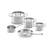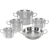 Fazék - rozsdamentes acél belső felület, alkalmas gáz, elektromos, indukciós és üvegkerámia főzőlaphoz, alakja kerek, 1,5 l-es kiszerelés, rozsdamentes acél fogantyúval, szendvics fenekű, mosogatógépben mosható, 9,5 cm magas, átmérője 14 cm