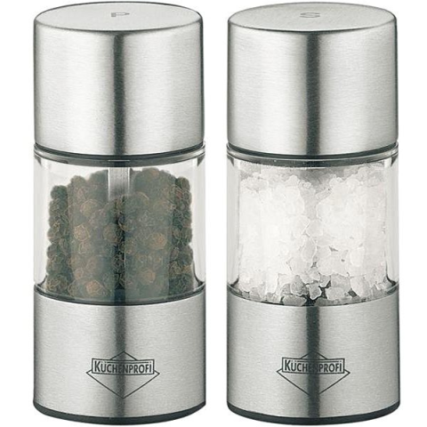 Daráló készlet - bors és só, kézi, állítható örlési finomság, 2 darab a csomagban, anyaga: akril és fém Küchenprofi Vienna 8,5 cm-es só- és borsőrlő készlet. Praktikus midi méretű só- és borsőrlő daráló készlet akril és rozsdamentes acél elegáns kombinációjával. A tartós kerámia őrlőszerkezet garantálja