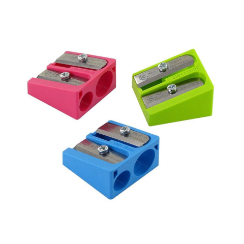 KUM 410 K hagyományos, 2 lyukú műanyag ceruzahegyező. Ék alakú, normál méretű és vastagabb ceruzával is használható. Gyorsan és hatékonyan hegyez. Vegyes színekben szállítjuk. .