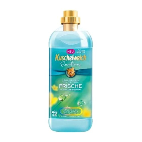 Öblítő - normál mosáshoz, bármilyen típusú ruházathoz, színes, fehér és fekete ruhákhoz, 38 mosás, virágos illat, származás Németországból, 1000 ml űrtartalom A KUSCHELWEICH Emotions Frische öblítő gyengéd ápolást biztosít a ruháknak frissítő illattal, amely tisztaság- és frissességérzetet kölcsönöz. A dermatológiailag tesztelt, mikroműanyagoktól mentes öss