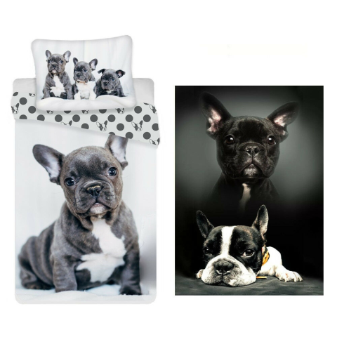 1 kép Kutyás Kutyás felnőtt ágyneműhuzat és polár takaró, 2 db-os szett (French Bulldog)