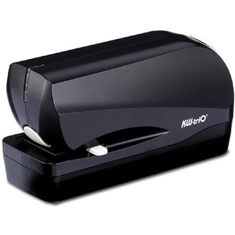 Irodai tűzőgép - elektromos és asztali, zárt tűzés, 24/6 és 26/6 kapocsmérethez, tűzési kapacitás akár 20 lap, ergonomikus kialakítás, csúszásgátlós alsó rész, 6 1,5V AA elem, anyaga fém és műanyag, fekete kivitel, mérete 10,7 × 20 × 6 cm (Ma×Sz×Mé), tömege 800 g A praktikus KW-Trio elektromos fűzőgép nemcsak az irodában, hanem otthoni környezetben is praktikusan használható. Akár 20 lap összekapcsolására is alkalmazható. A csúszásmentes talp biztosí