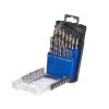 KWB hengeres spirálfúrószár készlet 19 darabos (49205920) DIN 338, jobbra vágott, N típusú, precízen csiszolt, önszínű. A csúcs szöge 135 fok, keresztcsiszolás DIN 1412 C szerint, önközpontosító, hengeres, ipari minőség, pl. acélhoz és ötvözött acélho
