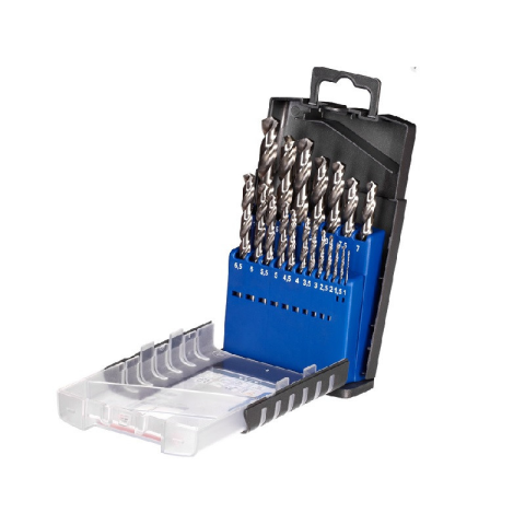 KWB hengeres spirálfúrószár készlet 19 darabos (49205920) DIN 338, jobbra vágott, N típusú, precízen csiszolt, önszínű. A csúcs szöge 135 fok, keresztcsiszolás DIN 1412 C szerint, önközpontosító, hengeres, ipari minőség, pl. acélhoz és ötvözött acélho