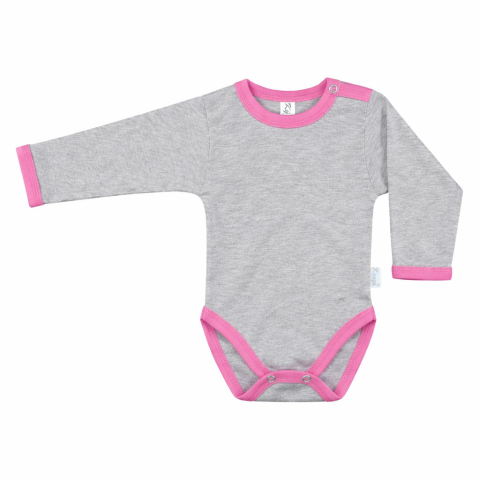 1 kép Kynga melírszürke-sötét rózsaszín hosszú ujjú koraszülött baba body 50