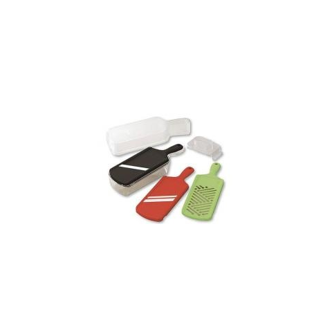 A Kyocera kerámia szeletelő szett tartalmaz 1 darab állítható szeletelőt, 1 darab "Julienne" szeletelőt, 1 darab műanyag reszelőt és 1 darab kézvédőt, mindez egy formatervezett dobozban tárolható, ami szeleteléskor gyűjtő dobozként is használható, így a szeletelt zöldség, gyümölcs, sajt nem szóródik szét. A Kyocera szeletelők pengéje cirkónium- oxid /kerámia/ anyagból készült. Rendkívül éles és ellenálló, valamint 10 x tovább megtartja az élét, m