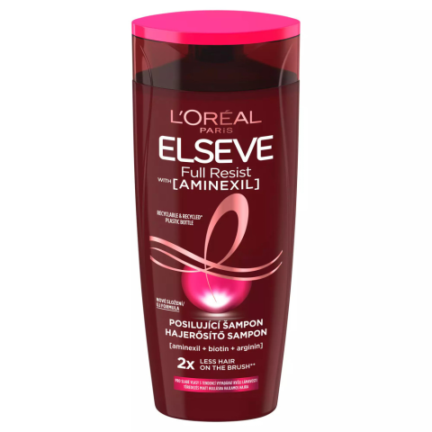 A L'Oréal Paris Elseve Full Resist Sampon kifejezetten a gyenge, töredezés miatt hullásra hajlamos haj megerősítésére lett kifejlesztve. Formulája argininnal és proteinnel gazdagított, amelyek segítenek átalakítani a haj szerkezetét, táplálva azt a hajtöv