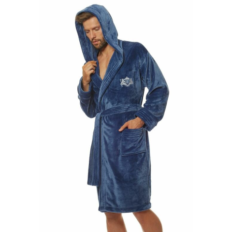 L&L Costa férfi fürdőköpeny, kék, hímzett XL