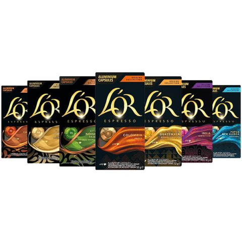 Kávékapszula - tejmentes kávés italok készítéséhez, kávékeverék, dark (intenzitás 10), Ristretto és Espresso csészemérethez, 70 kapszulát tartalmaz L'OR Prémium MixPack NespressoOriginal, 70 darabA L'OR Premium MixPack Nespresso kávékapszulákkal többféle ízletes kávét kóstolhatsz meg. Segítségükkel eszpresszót és lungót készíthetsz. A szettben va