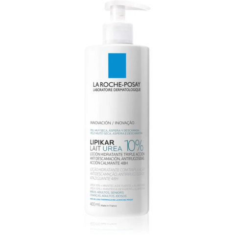 LRP Lipikar 10% UREA hármas hatású hidratáló tej. Hámlás és érdesség ellen. Akár 48 órás bőrnyugtatás. JAVALLAT: Nagyon száraz, érdes, hámló bőr. Gyerekek, felnőttek és idősek számára. Keratosis pilarisra, senile xerosisra és pikkelysömörre hajlamosak