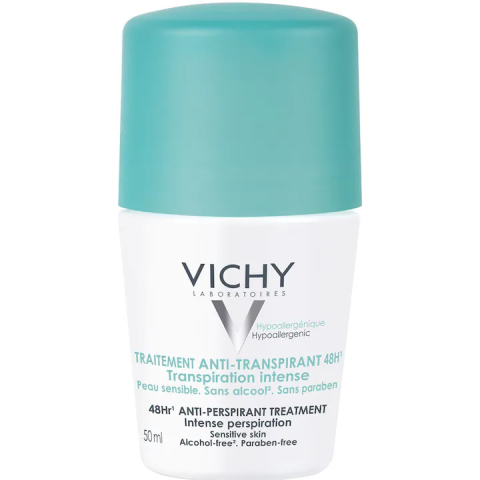 golyós dezodor roll-on az erőteljes izzadás ellen, foltmentes Átizzadt ingek, kellemetlen testszag, vagy foltok a ruhán, a hónalj környékén?A Vichy Deodorant antiperspiráns roll-on túlzott izzadás ellen 48 órás védelmet nyújt izzadás ellen, tehát ilyes