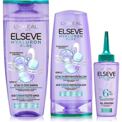 Hajápoló szett - hajszérum 102 ml + hajsampon 400 ml + hajkondicionáló/balzsam 300 ml L'ORÉAL PARIS Elseve Hyaluron Pure készletMost már nemcsak a bőrödet, de a hajadat is ápolhatod hialuronsavval, amelyet joggal neveznek a fiatalság elixírjének. A L'Oréal Paris Elseve Hyaluron Pure ha