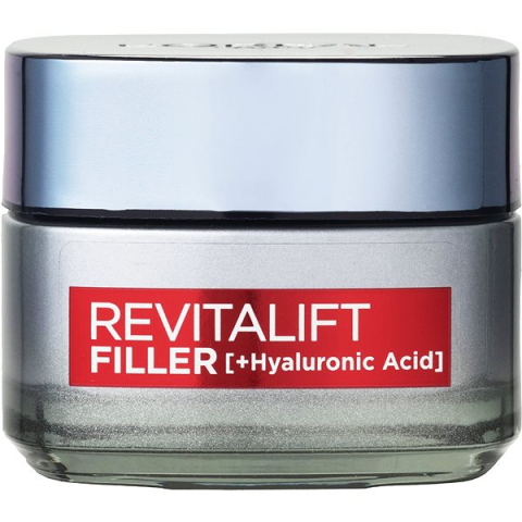 Arckrém - zsíros, normál, kombinált, száraz és érett bőrre ajánlott, 40+ korosztály számára Feltöltő nappali arckrém CXhialuronsavval, hosszantartó hatással a teltebb bőrért és a kisimított ráncokért.A L'ORÉAL PARIS Revitalift Filler nappali arckrém 50 ml főbb tulajdonságaiFeltöltő hatású ar