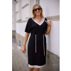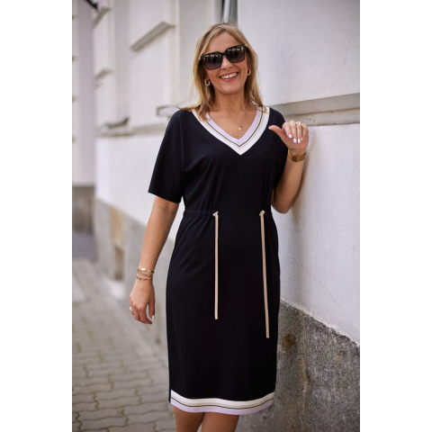 Női Hétköznapi Ruha La Aurora MM-199918. Színe: Fekete Nagyon nőies és kényelmes kötött ruha. A márka alapelveinek megfelelően tervezték, azaz érett nők számára. Megfelelő hosszúság, kb. 2-3 cm a térd felett 166-168 cm magasságnál, kimono felsőrésszel és lefelé lecsengő ujjakkal, állítható derékkal, esztétikus befejezésekkel, bézs díszítéssel és fém stopperrel, szürke színű és puha, formázható kötött anyaggal,