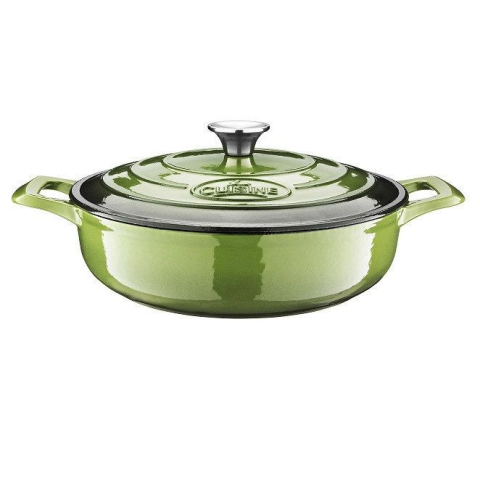 La Cuisine Zománcozott öntöttvas lapos lábas fedővel 26 cm zöld edény termékleírás