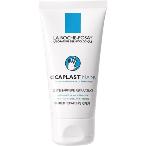 Kézkrém - hidratáló, regeneráló, tápláló és nyugtató, dermo, ekcémára, kipirosodott bőrre és száraz bőrre ajánlott, atópiás, ekcémás, érzékeny, zsíros, normál, kombinált, száraz és érett bőrre alkalmas, parabénmentes és illatmentes, mindennapi használatra, hatóanyaga: glicerin és niacinamide, 50 ml-es kiszerelésben A LA ROCHE-POSAY Cicaplast Mains kézkrém csökkenti a sérült bőrképet és megszünteti a bőrpírt. Már néhány használat után érezni f