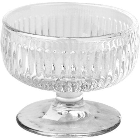 A La Rochére Tahiti üveg fagylaltkehely 230 ml űrtartalommal ideális fagylaltok, pohárdesszertek és desszertek tálalásához. Átlátszó üveg finom mintázattal. Magasság 80 mm, átmérő 100 mm. A szett 6 darabot tartalmaz.