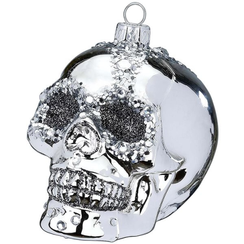 1 kép LAALU dísz: koponya csillámokkal 9 cm, ezüst