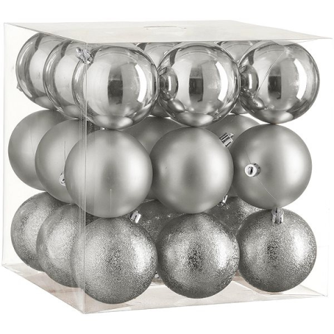1 kép LAALU Díszgömb szett, ezüst árnyalatokban, 8 cm, 27 db