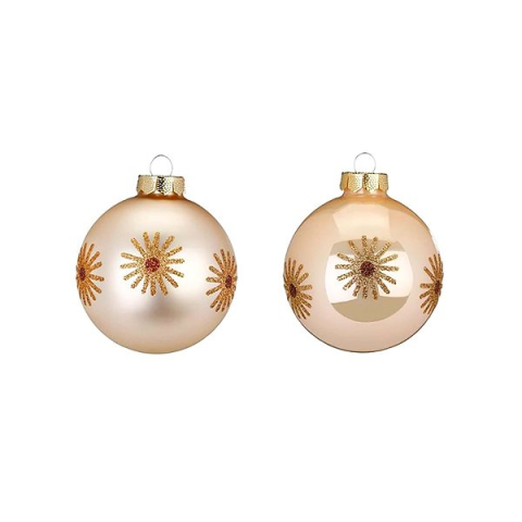 Karácsonyfadísz - gömb, egyfajta készlet, üveg, matt és fényes felület, bézs kivitel, méretei 8 × 8 cm (ma × szé), 12 db a csomagban A szemet vonzó LAALU díszkészlet: champagne dekoráció matt/fényes 8 cm, 12 db termék leglényegesebb tulajdonságai A remek LAALU karácsonyfa díszek előállításánál kifinomult üveget használtak Bézs szín