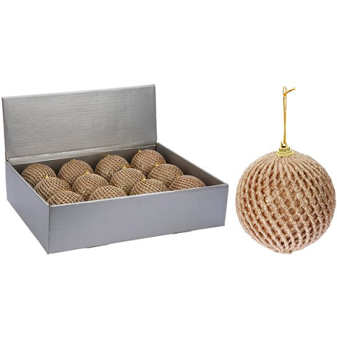 1 kép LAALU díszkészlet: champagne hálós díszek 10 cm, 12 db