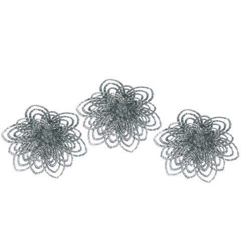 1 kép LAALU Díszkészlet, csipeszes virág, ezüst, 12 cm, 3 db