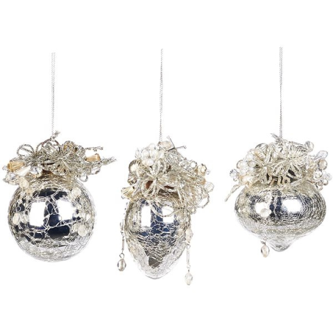 1 kép LAALU díszkészlet: ezüst dísz gyöngyökkel 9 cm, 3 db