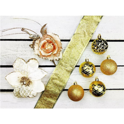 Karácsonyfadísz - gömb és virág, kombinált készlet, matt és fényes felület, bézs és arany kivitel, 19 db a csomagban A tetszetős LAALU díszkészlet - Lágy rózsa, max. 100 cm fákhoz termék legfontosabb tulajdonságai Bézs és arany szín, matt és fényes felülettel A csomagolásban található 19 darab különböző típusú karác