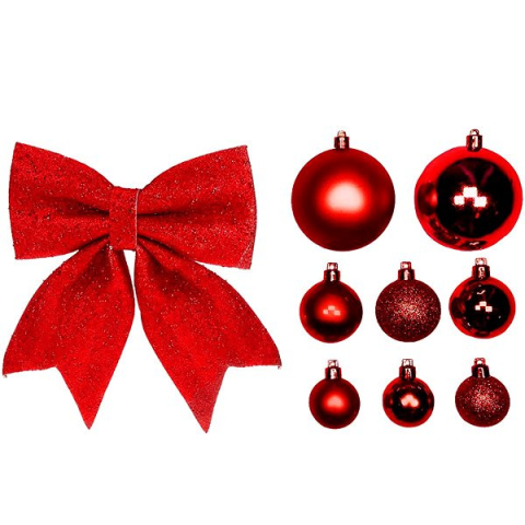 Karácsonyfadísz - gömb és masni, kombinált készlet, műanyag, matt és fényes felület, piros kivitel, 73 db a csomagban Az elegáns LAALU díszkészlet: Piros karácsony, 120-210 cm fákhoz termék alapvető paraméterei A stílusos LAALU karácsonyfa díszek gyártásához időtálló műanyagot használtak Piros kivitel, matt és fényes