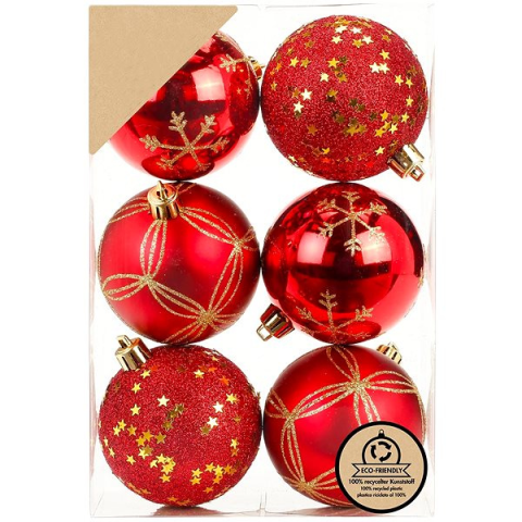 1 kép LAALU díszkészlet - piros vegyes díszek 8 cm, 6 db