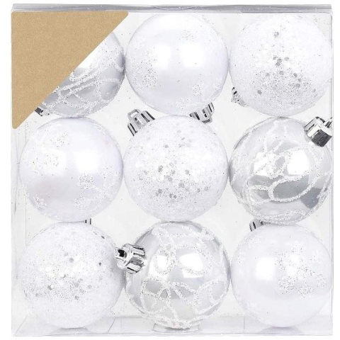 1 kép LAALU díszkészlet: vegyes 6 cm, 9 db, fehér