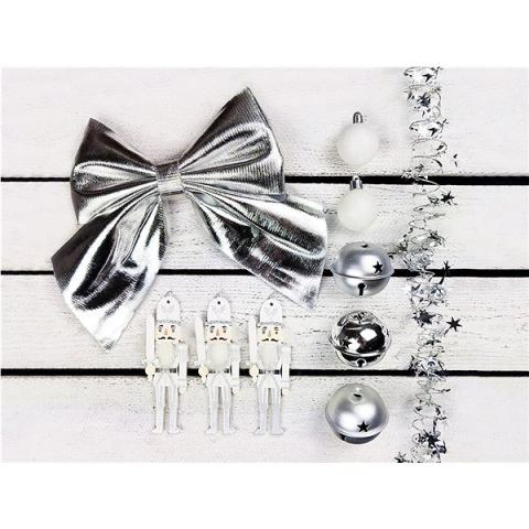 Karácsonyfadísz - atipikus forma, kombinált készlet, műanyag, matt és fényes felület, fehér és ezüst kivitel A mutatós LAALU Ezüst katonák díszkészlet, max. 100 cm fákhoz termék alapvető tulajdonságai A dekoratív LAALU karácsonyfa díszek gyártásához időtálló műanyagot használtak Fehér és ezüst kivitel, matt