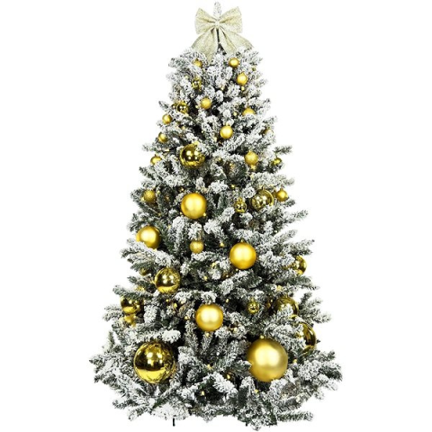 Műfenyő - mű, jedle 2D tűlevéllel, fehér kivitel, magassága 240 cm, szélessége 137 cm, beltéri, a felszereltség része állvány és tűzálló bevonat, díszek és havas borítás, arany díszek A dizájnos LAALU feldíszített karácsonyfa - Aranykarácsony, 85 dísz, 240 cm termék legfontosabb jellemzői A nagyszerű fehér színű LAALU műfenyő beltéri környezetben való használatra készült Alakja és