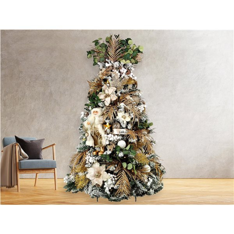 Műfenyő - mű, jedle 2D tűlevéllel, fehér kivitel, magassága 270 cm, szélessége 147 cm, beltéri, a felszereltség része állvány, díszek és havas borítás, fehér, arany és zöld díszek A nagyszerű LAALU feldíszített karácsonyfa - Lágy pezsgő, 169 dísz, 270 cm termék fontosabb paraméterei A dekoratív fehér színű LAALU műfenyő használata kizárólag belső térben javasolt Megjelenésében