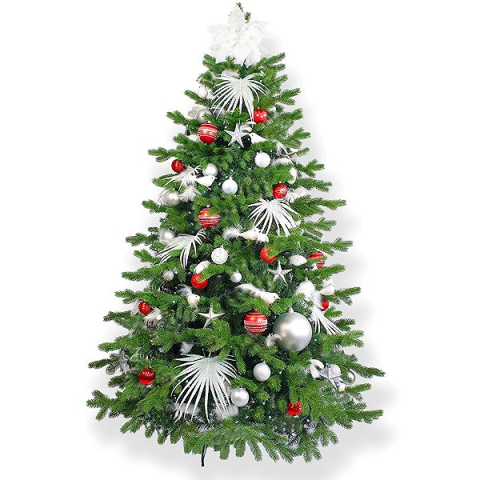 Műfenyő - mű, jedle 3D tűlevéllel, zöld kivitel, magassága 360 cm, szélessége 218 cm, beltéri, a felszereltség része állvány, díszek, piros díszek, anyaga PVC A kiváló LAALU feldíszített karácsonyfa - Polárvörös II, 213 dísz, 360 cm termék lényeges paraméterei A szemet vonzó LAALU műfenyő beltéri környezetben való használatra készült Alakja és tűlevelei hűe