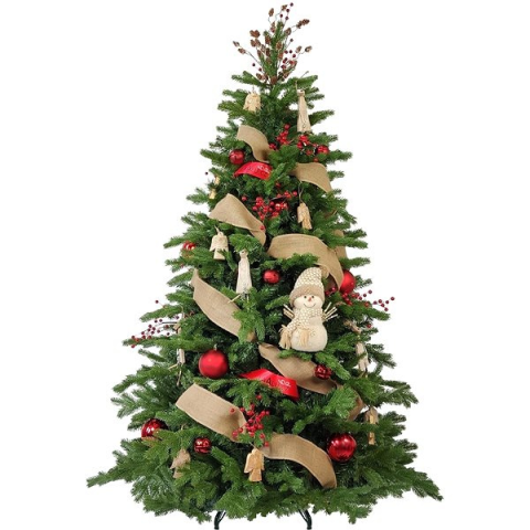 Műfenyő - mű, jedle 3D tűlevéllel, zöld kivitel, magassága 270 cm, beltéri, a felszereltség része állvány, díszek, piros díszek A dizájnos LAALU karácsonyfa feldíszítve - Az erdő titkai, 105 dísz, 270 cm termék alapvető tulajdonságai A tetszetős LAALU műfenyő használata kizárólag belső térben javasolt Emlékeztet az igazi jegen