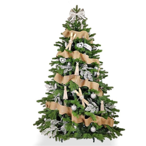 Műfenyő - mű, jedle 3D tűlevéllel, zöld kivitel, magassága 270 cm, szélessége 15,7 cm, beltéri, a felszereltség része állvány, díszek, fehér, ezüst és barna díszek A tetszetős LAALU karácsonyfa feldíszítve - Északi tél, 136 dísz, 270 cm termék leglényegesebb tulajdonságai A nagyszerű LAALU műfenyő benti használatra készült Megjelenésében és szerkezetében az igaz