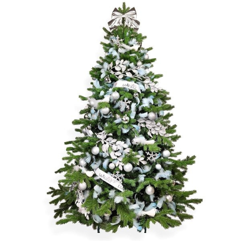 Műfenyő - mű, jedle 3D tűlevéllel, zöld kivitel, magassága 270 cm, szélessége 157 cm, beltéri, a felszereltség része állvány, díszek, fehér, ezüst és kék díszek A dizájnos LAALU karácsonyfa feldíszítve - Mennyei ezüst, 131 dísz, 270 cm termék fontosabb jellemzői A stílusos LAALU műfenyő beltéri használatra alkalmas Úgy tervezték, hogy a lehető leghitelesebben