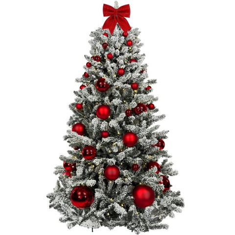 1 kép LAALU karácsonyfa feldíszítve - Piros karácsony, 73 dísz, 150 cm