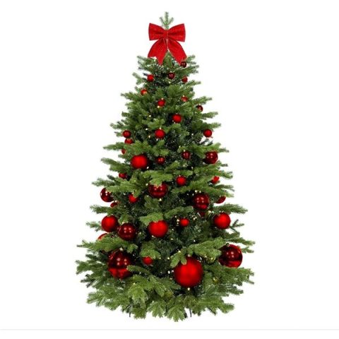 Műfenyő - mű, jedle 3D tűlevéllel, zöld kivitel, magassága 210 cm, szélessége 134 cm, beltéri, a felszereltség része állvány és tűzálló bevonat, díszek, piros díszek, anyaga PVC A minőségi LAALU karácsonyfa feldíszítve - Piros karácsony II, 73 dísz, 210 cm termék legfontosabb jellemzői A tetszetős LAALU műfenyő kifejezetten beltéri használatra lett tervezve Emlékeztet az igaz