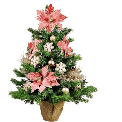Műfenyő - mű, jedle 3D tűlevéllel, zöld kivitel, magassága 60 cm, szélessége 40 cm, beltéri, a felszereltség része állvány, díszek és megvilágítás, arany és rózsaszín díszek A dekoratív LAALU karácsonyfa LED fényekkel díszítve - Hópelyhek, 25 dísz, 60 cm termék legfontosabb paraméterei A remek LAALU műfenyő beltéri használatra alkalmas Úgy tervezték, hogy a lehető legélet