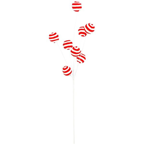 1 kép LAALU karácsonyi dekoráció - gally gömbökkel, piros/fehér, 68 cm