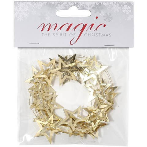 1 kép LAALU karácsonyi dekoráció - lánc, arany, csillagokkal, 2 m