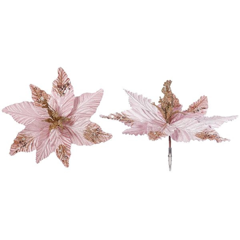 LAALU karácsonyi dekoráció - virág flitterekkel, champagne/rózsaszín, 30 cm